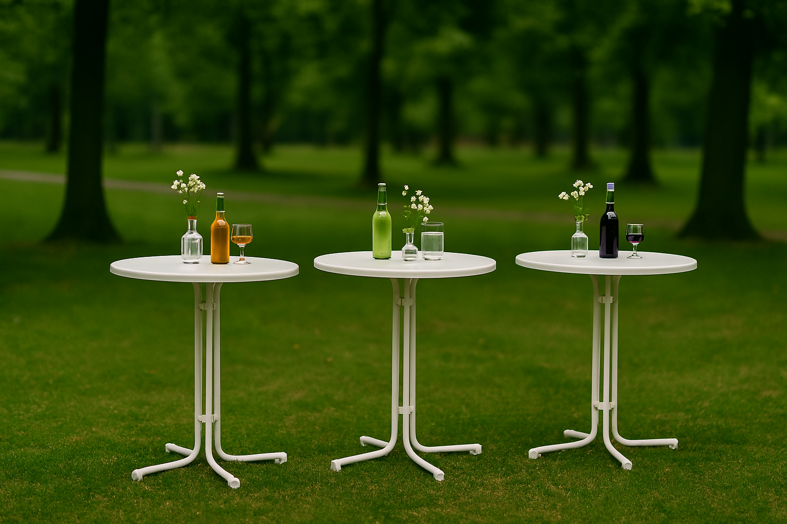 Liegestühle, Bartische/Stehtische, Bierbänke und Biertische.