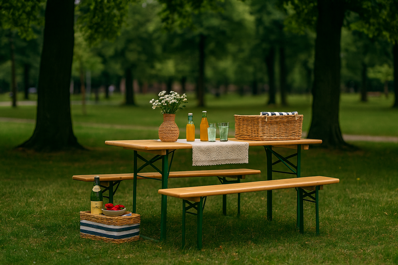 Bierzeltgarnitur, 1 Tisch 70 cm breit, 220 cm lang + 2 Bänke 18,00 € inkl. MwSt. / für 24h